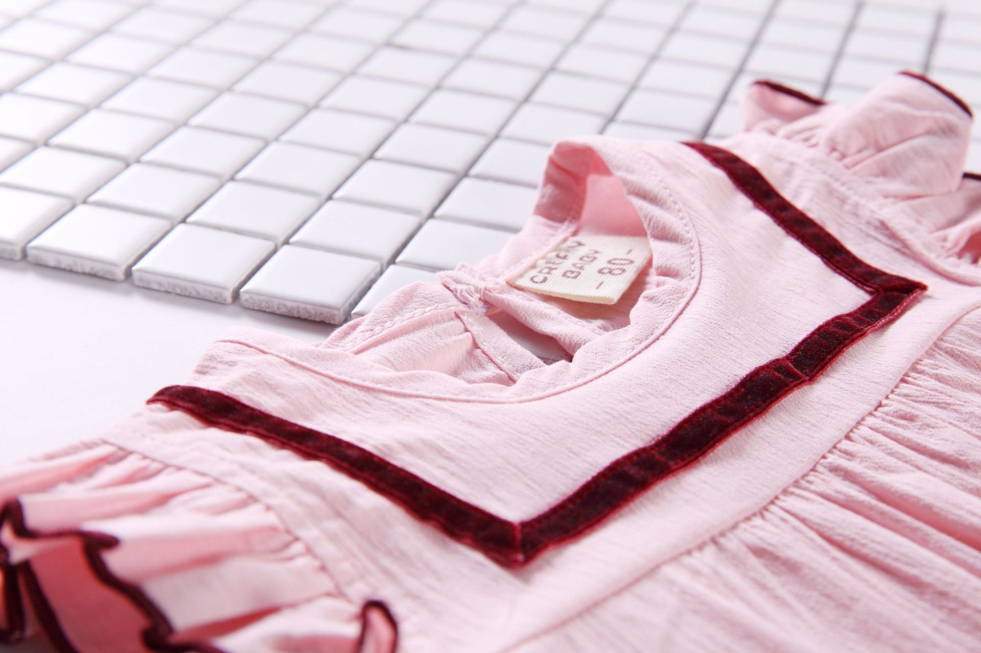This elegant baby onesies & hat set presents an alluring combination of contemporary and classic style. With contrast tape patched frill trim and a sleeveless silhouette, it is sure to impart a tasteful and chic look to any baby's wardrobe.