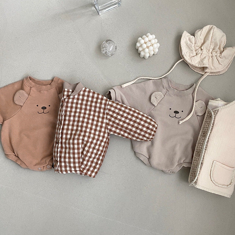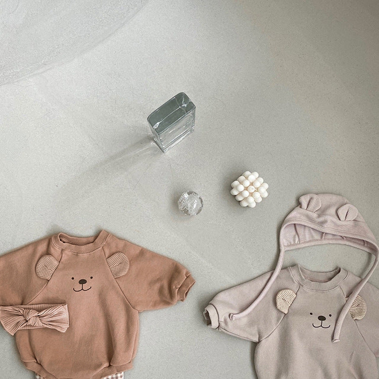 Baby Bear Print Pattern Ears Patch Design Hoodie Onesies