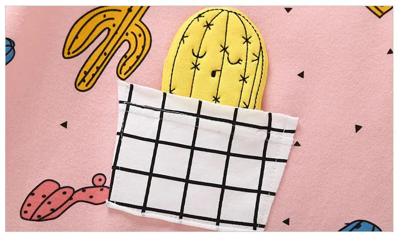 Baby Cactus & Dot Pattern Long Sleeves O-Neck Cotton Jumpsuit