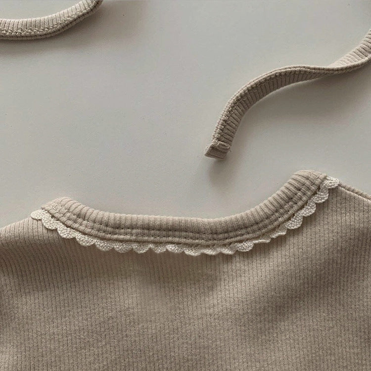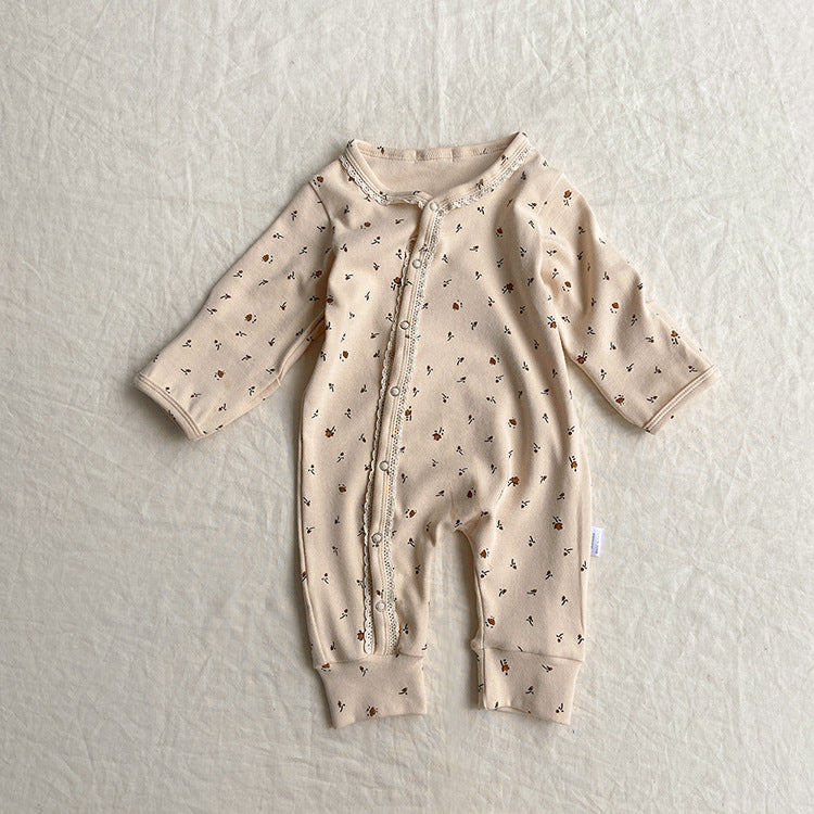 Baby Flower Pattern & Solid Color Lace Design Button Front Jumpsuit