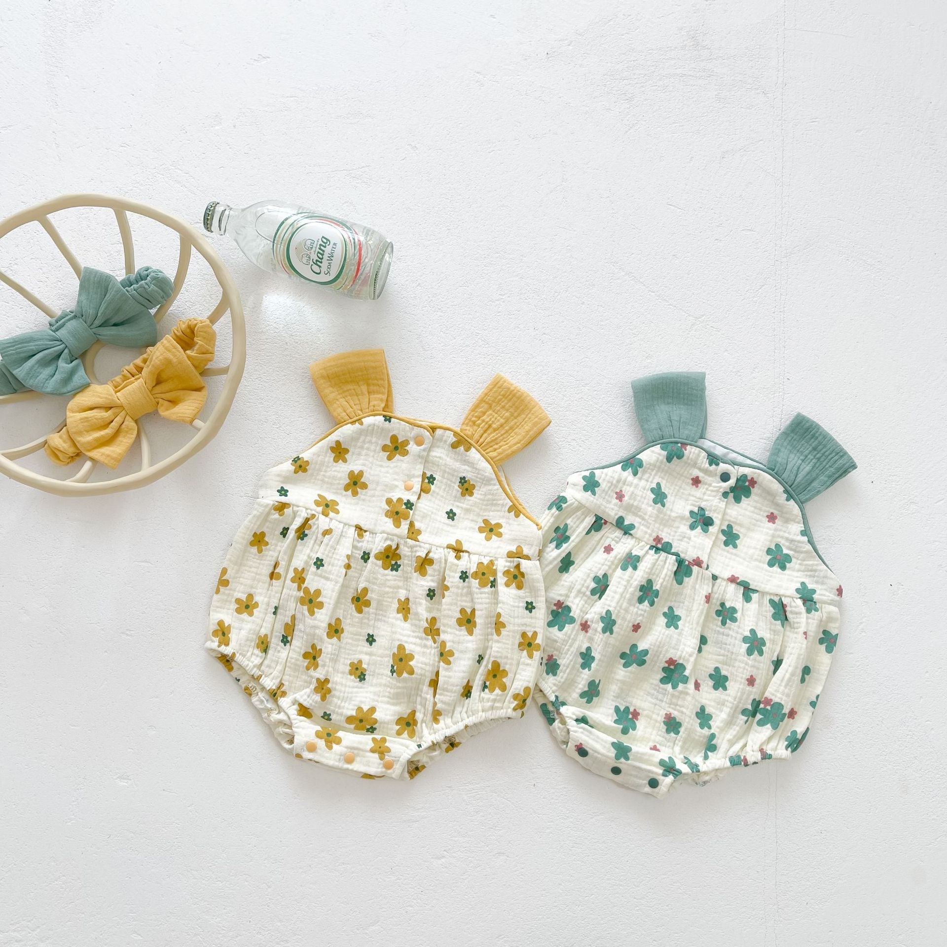 Baby Girl Floral Print Sleeveless Suspenders Onesies