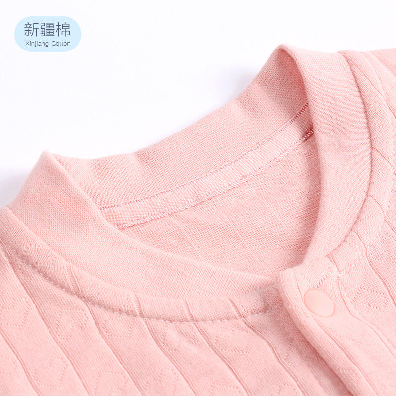 Baby Solid Color Pit Strip Fabric Single Breasted Design Cotton Jumpsuit Pajamas