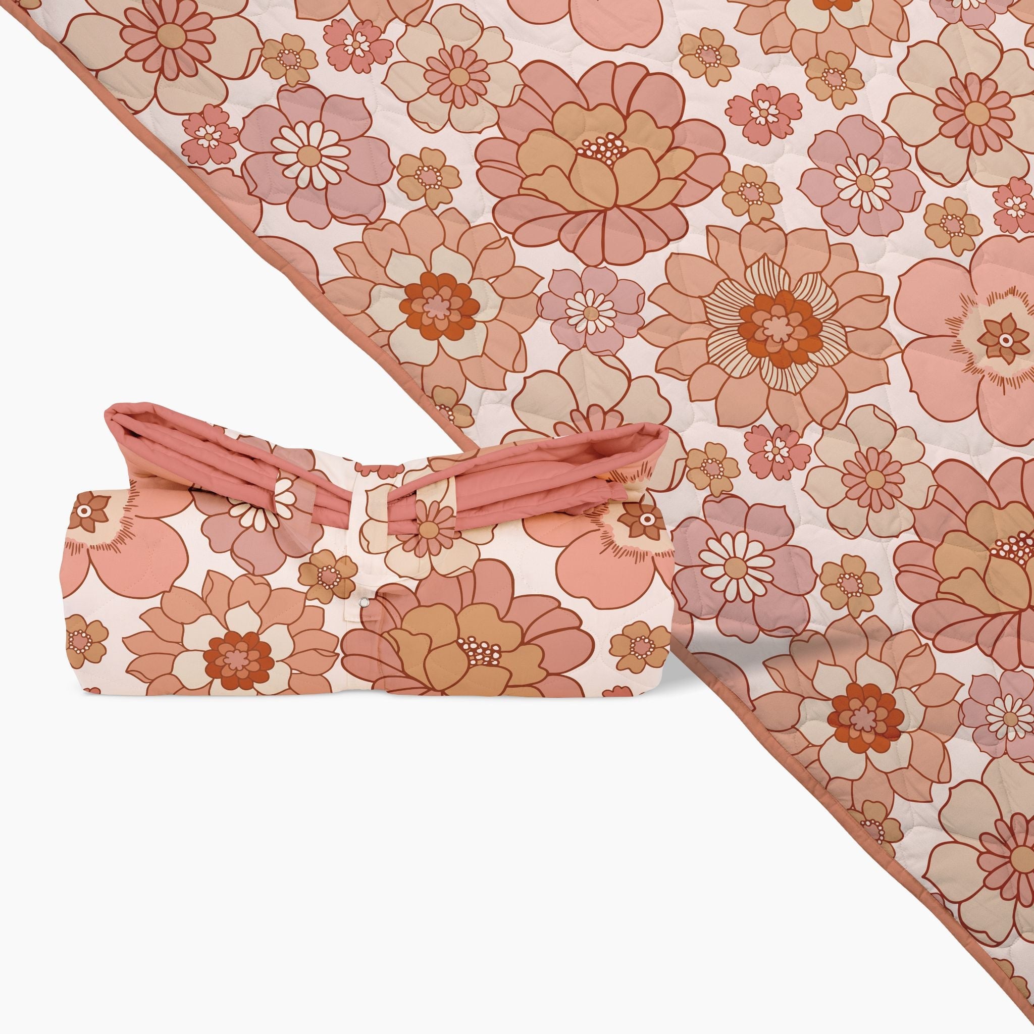 Ready for every family adventure, this roll-up picnic blanket features organic quilted water repellent cotton and a carry handle for comfort and convenience.