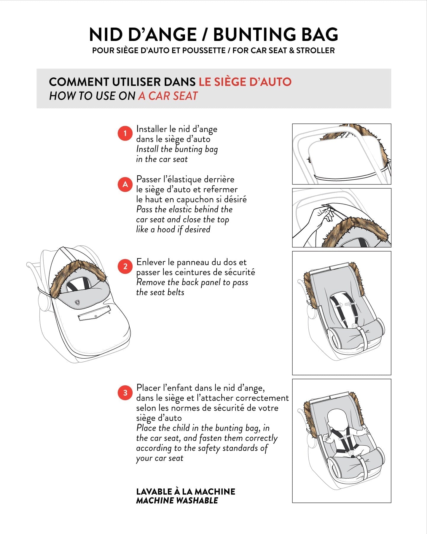 This snuggle bag for babies provides superior warmth and comfort in temperatures down to -20°C (-4°F). Breathable with a waterproof coating to keep infants dry, this bunting bag in sage green is car seat compatible with side zippers that allow for full opening, a soft velour lining, and a convertible top that can be turned into a hood. A sherpa-lined velour beanie and blanket are included for added warmth.